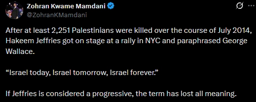 @FiringSquadsEnjoyer a lot of stuff since the election but off the top of my head endorsing Hakeem Jeffries after literally tweeting about him being a zionist like 2 years ago, i think he said something about ice in that trump meeting but i dont remember, something about collabing with zionists to make protesting outside religious places illegal